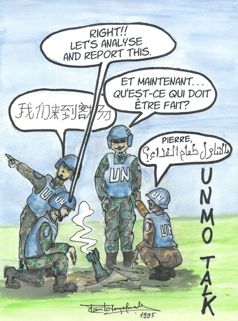 The sight of the Russian blue helmets was a balsam to the UNMO crews. The tension was gone and the humour returned to the vehicles, with the portable radio tweeting all sort of small funny messages. The passengers were now joking with the very same situation that, minutes before, had them thinking in writing a farewell letter to their loved ones.