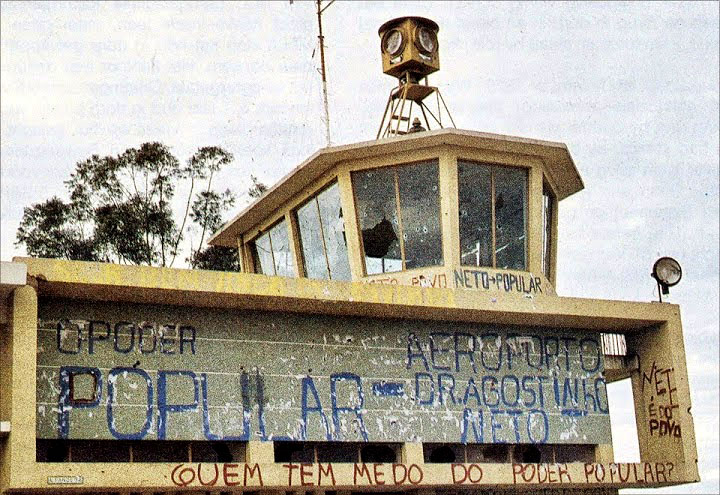 … A torre de controlo ficava na cobertura superior do pequeno edifício do terminal de passageiros, cujo telhado era uma placa em forma de terraço. O acesso ao cubículo envidraçado dos controladores era feito por um lance de escadas com um exagerado grau de inclinação. No final da “escada quebra-costas” havia um alçapão – tipo sótão – que dava acesso ao “aquário”. No exterior do topo do compartimento envidraçado estavam instaladas as antenas de comunicação, e o farol luminoso de identificação de aeródromo, o qual não funcionava. Dentro da apertada torre de controlo, havia uma velha consola de controlo de tráfego aéreo, mas, à exceção do rádio VHF, todos os equipamentos estavam avariados, ou em falta. Nem sequer telefone tinhamos. A ausência de condições de trabalho era gritante, a começar pela limpeza e manutenção do recinto. Um dos grandes vidros, tradicionalmente inclinados para fora, estava partido, exibindo um enorme buraco que facilitava a visão para fora, porque a observação através dos outros vidros era obstruída pelo pó e pela sujidade. A torre de Luena não estava dotada da maior parte dos equipamentos normais para controlo de tráfego aéreo, mas tinha duas espingardas automáticas Kalashnikov AK-47, devidamente municiadas e com o seletor de segurança na posição de fogo, para além de vários carregadores municiados em reserva.