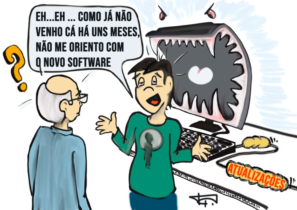 No entanto, até os mais novos têm de ter cuidado em não ficarem obsoletos, porque o monstro tem a tendência de comer o tratador. Por muito vocacionado/a que se esteja para a info-literacia, qualquer ausência perlongada do keyboard traduz-se em sérias dificuldades na integração sistémica, porque as novas tecnologias rejuvenescem-se a um ritmo alucinante.